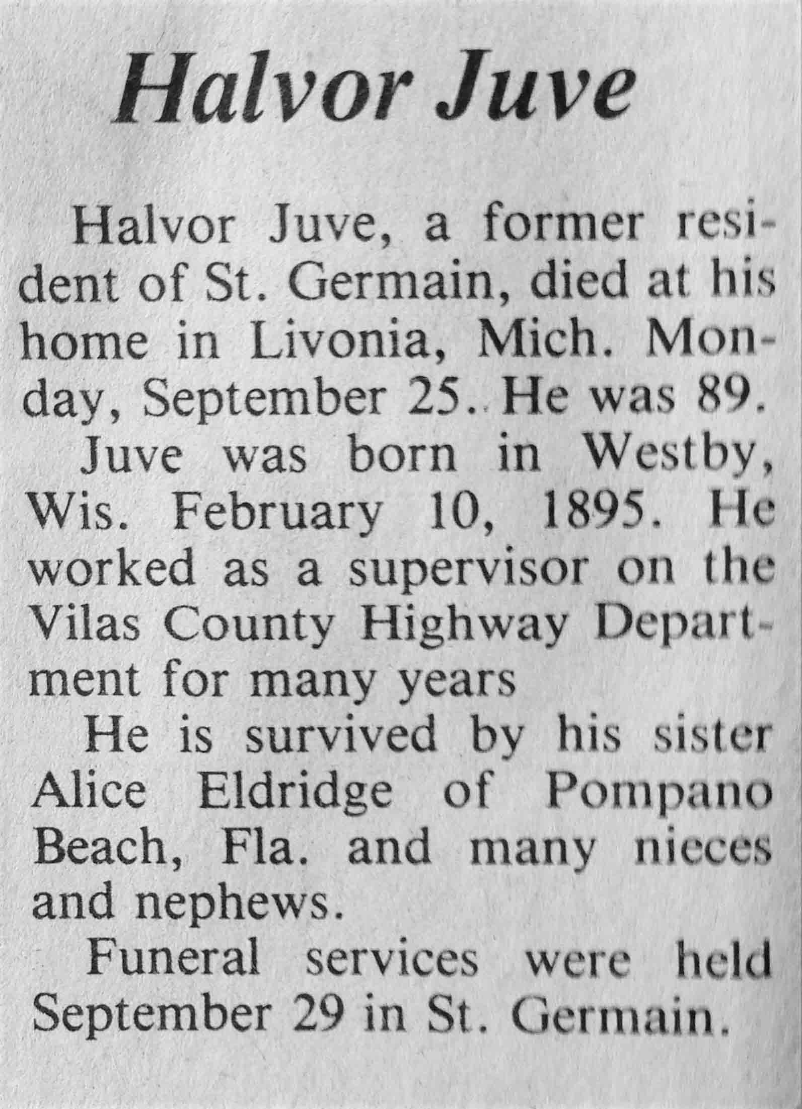 | Juve | Halvor | 10 Feb 1895 | 25 Sep 1984 | TLN | 03 Oct 1984 | 4 |