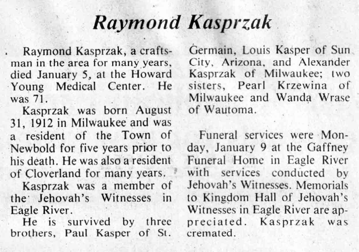 | Kasprzak | Raymond | 31 Aug 1912 | 05 Jan 1984 | TLN | 11 Jan 1984 | 4 |