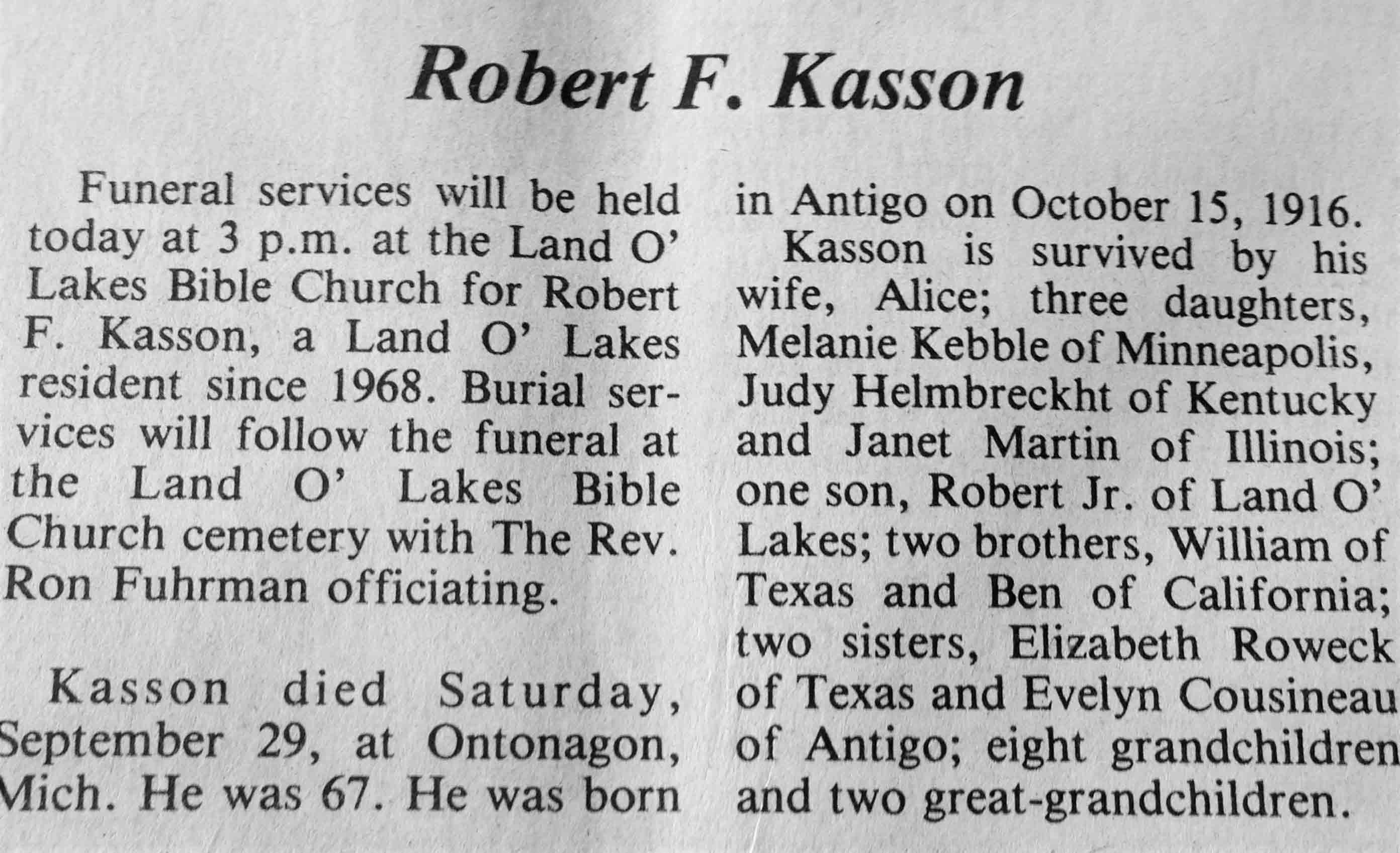 | Kasson | Robert F | 15 Oct 1916 | 29 Sep 1984 | TLN | 03 Oct 1984 | 4 |