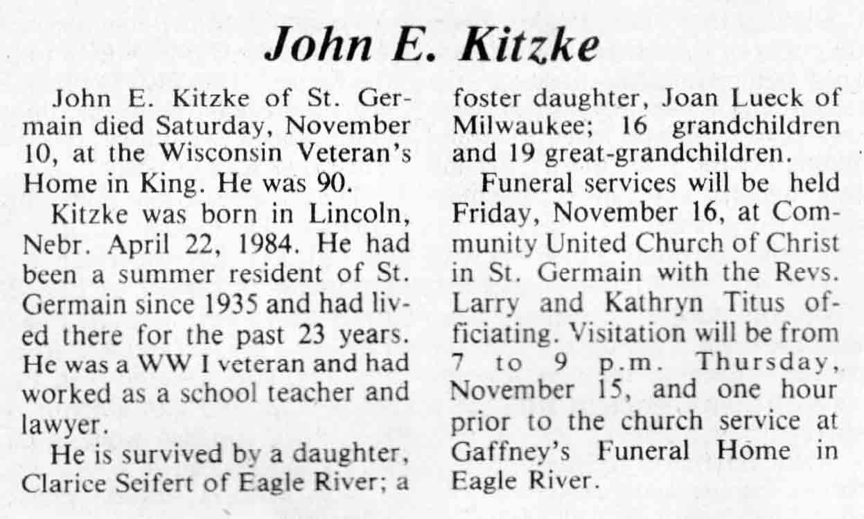 | Kitzke | John E | 22 Apr 1894 | 10 Nov 1984 | TLN | 14 Nov 1984 | 4 |