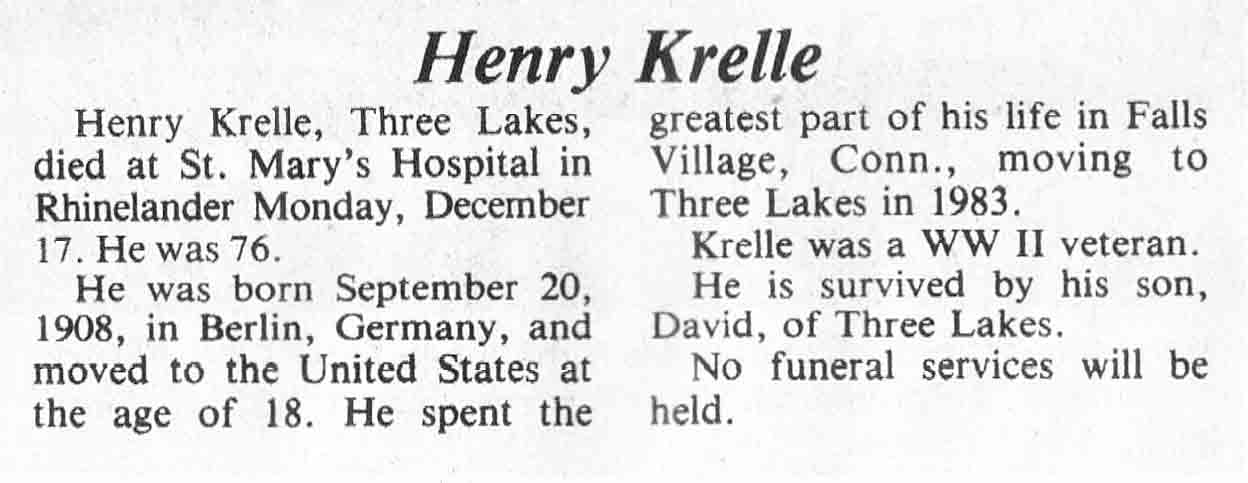 | Krelle | Henry | 20 Sep 1908 | 17 Dec 1984 | TLN | 26 Dec 1984 | 4 |