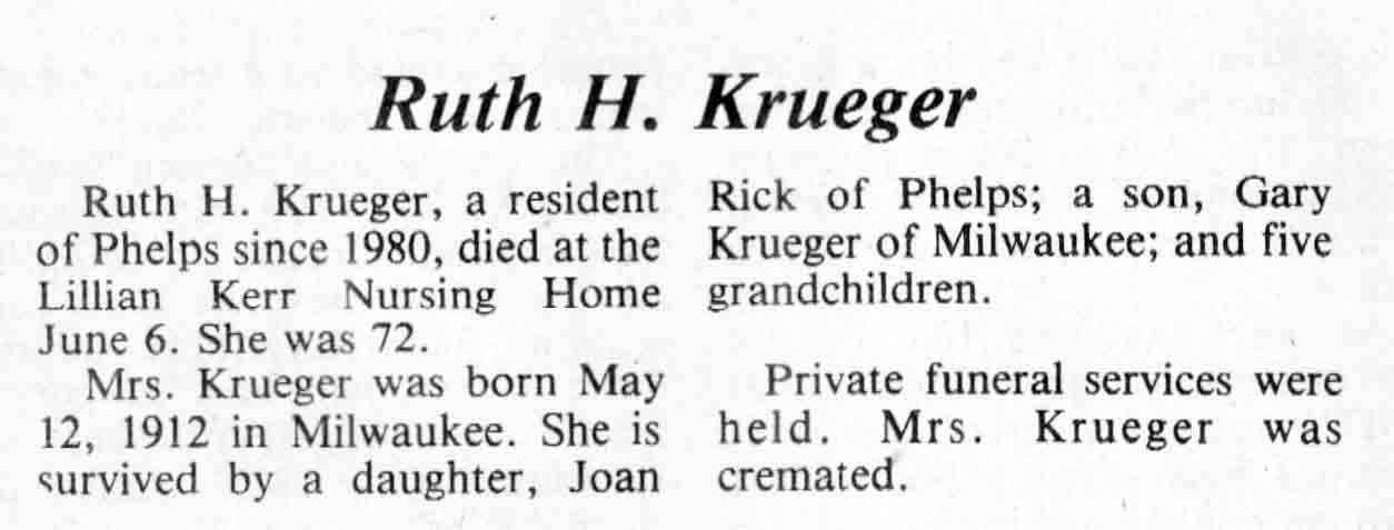 | Krueger | Ruth H | 12 May 1912 | 06 Jun 1984 | TLN | 13 Jun 1984 | 4 |