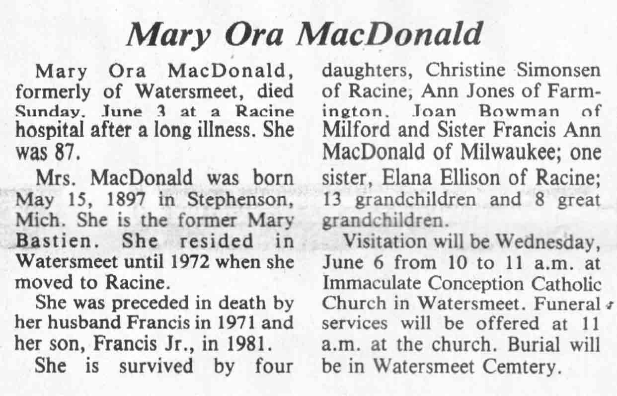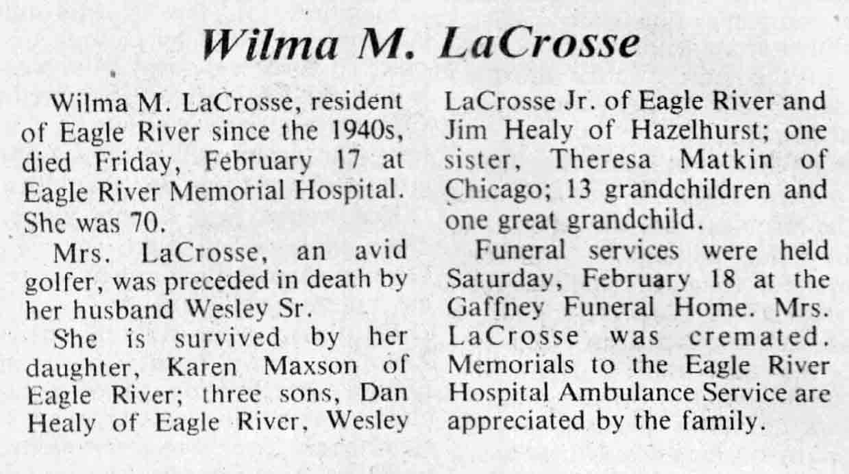 County, WI, Newspaper Obituaries
