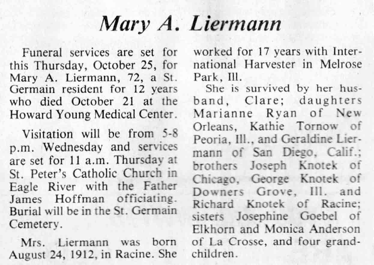 | Severson | Lucille (Richter) | c 1913 | 07 Jul 1984 | TLN | 25 Jul 1984 | 4 |