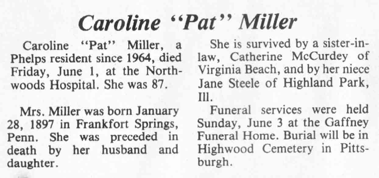 | Peckous | Edna A (Hahne) | 14 Jul 1917 | 23 Sep 1984 | TLN | 26 Sep 1984 | 4 |