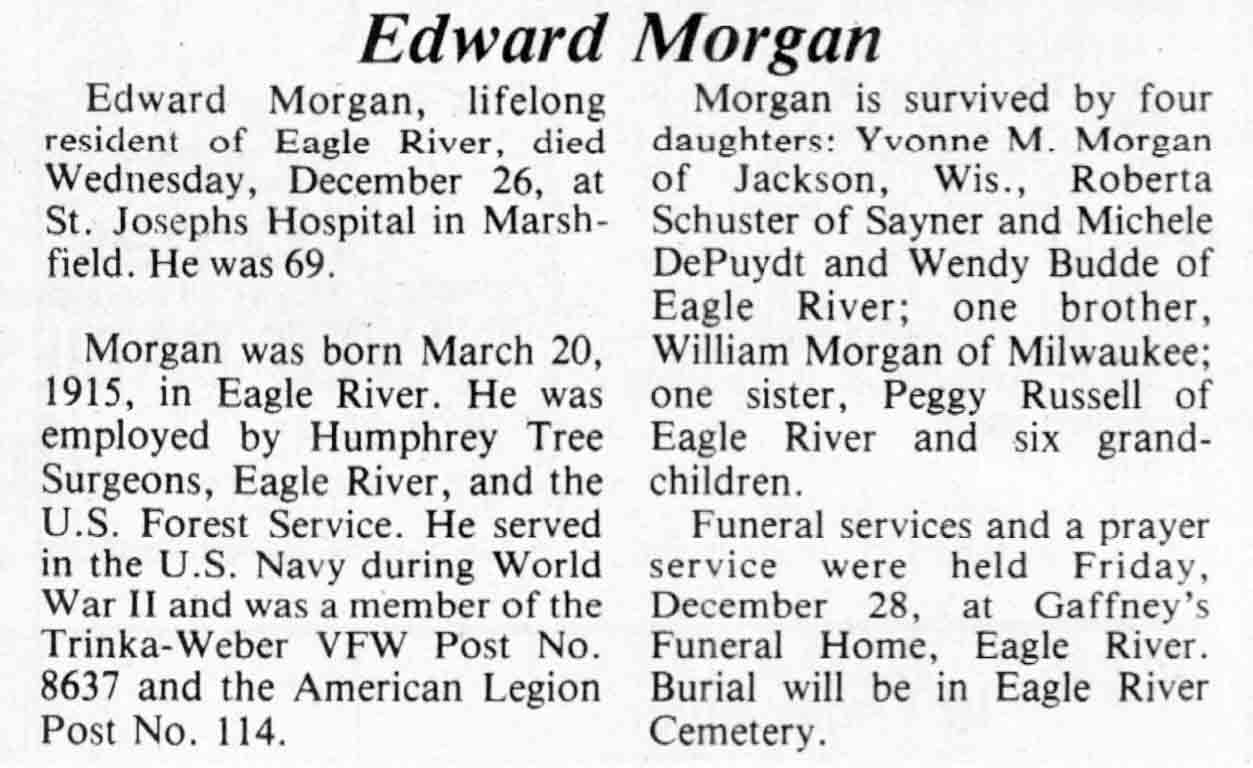 | Morgan | Edward | 20 Mar 1915 | 26 Dec 1984 | V N-R | 02 Jan 1985 | 20 |
