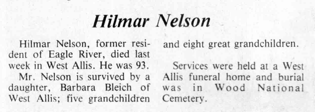 | Nelson | Hilmar | c 1891 | c May 1984 | TLN | 09 May 1984 | 4 |