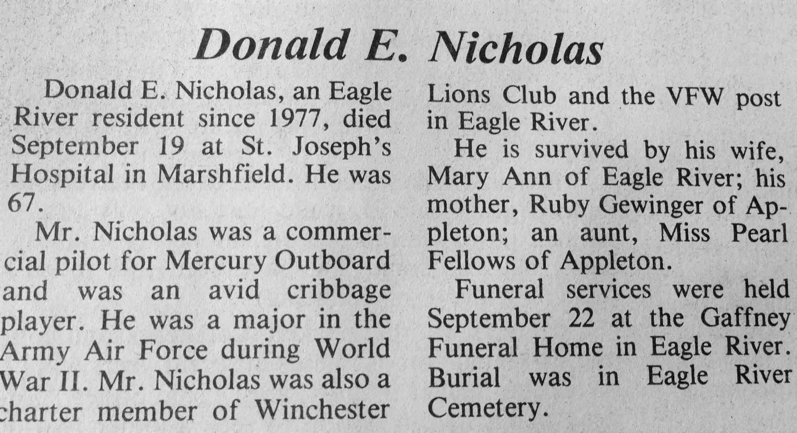 | Nicholas | Donald E | c 1917 | 19 Sep 1984 | TLN | 26 Sep 1984 | 4 |