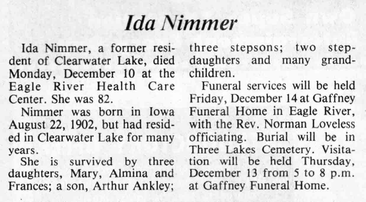 | Nimmer | Ida | 22 Aug 1902 | 10 Dec 1984 | TLN | 12 Dec 1984 | 4 |