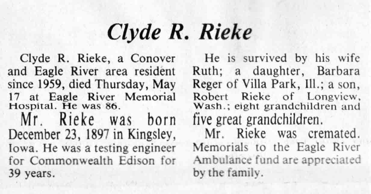 | Rieke | Clyde R | 23 Dec 1897 | 17 May 1984 | TLN | 23 May 1984 | 4 |