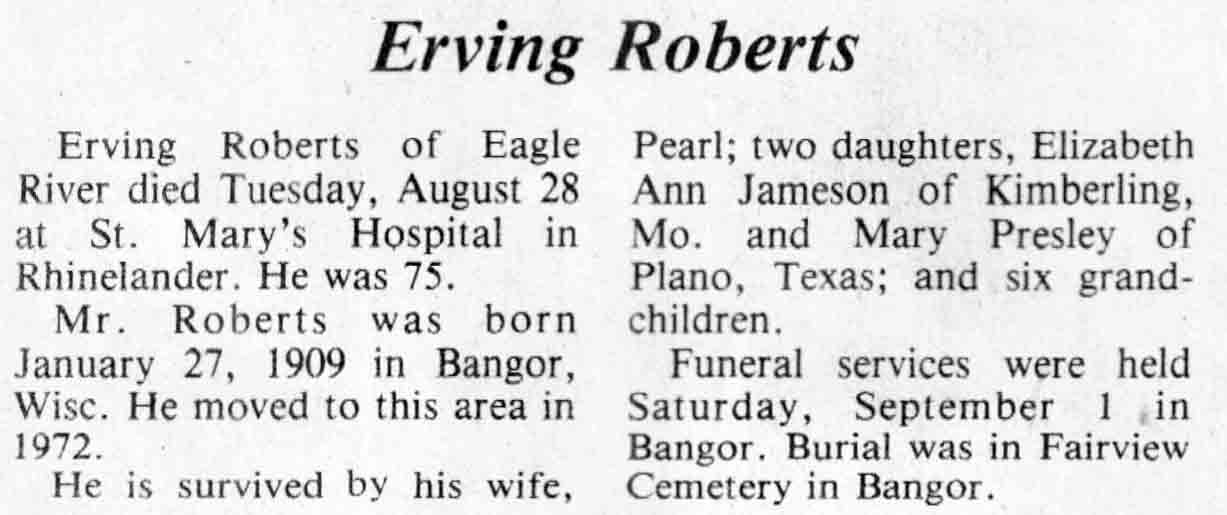 | Roberts | Erving | 27 Jan 1909 | 28 Aug 1984 | TLN | 05 Sep 1984 | 4 |