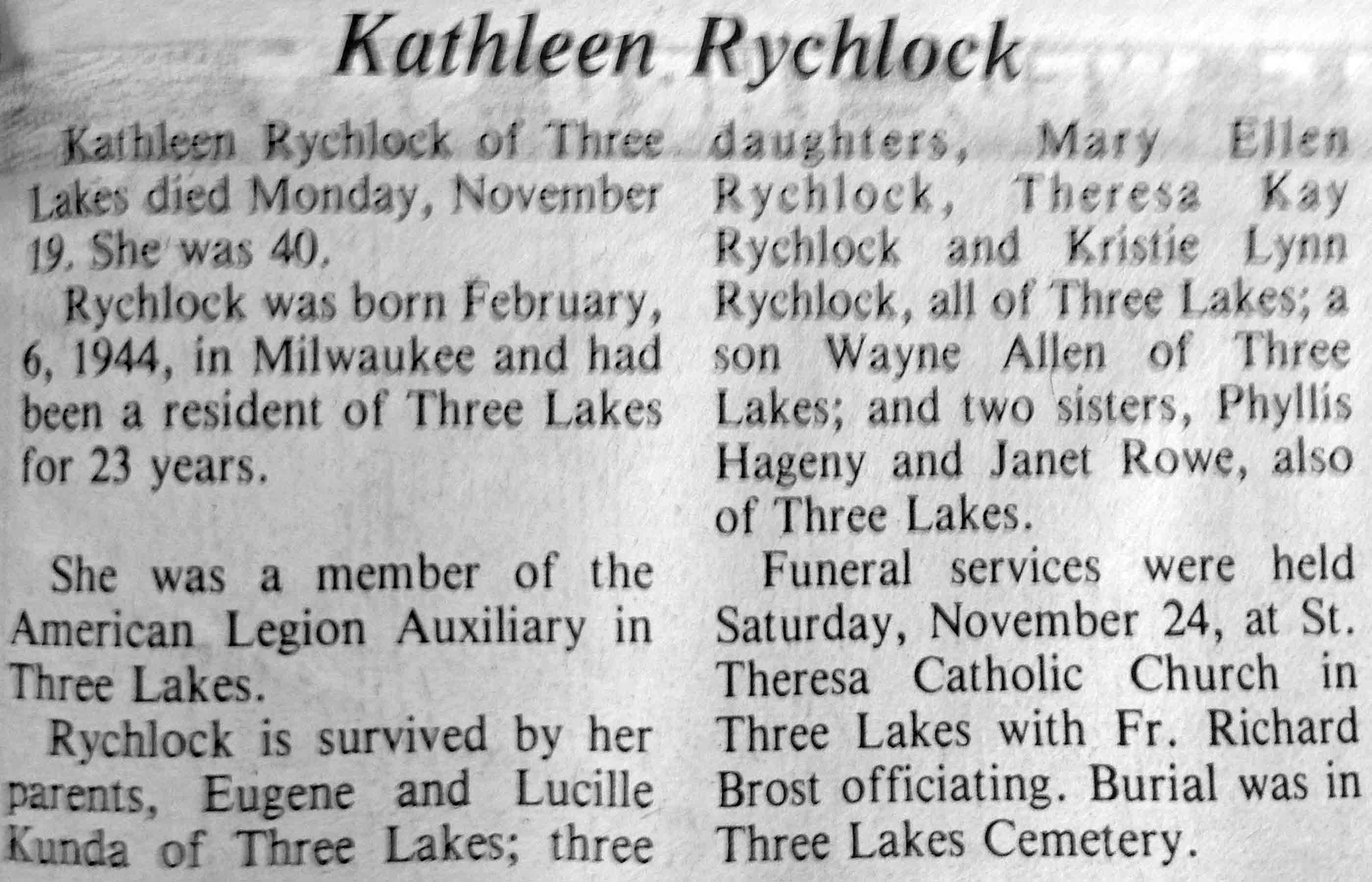 | Rychlock | Kathleen | 06 Feb 1944 | 19 Nov 1984 | TLN | 28 Nov 1984 | 5 |