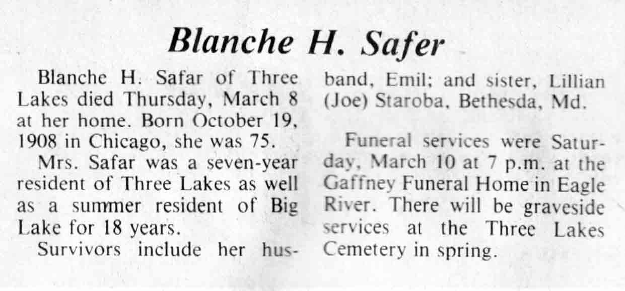 | Safer | Blanche H | 19 Oct 1908 | 08 Mar 1984 | TLN | 14 Mar 1984 | 4 |
