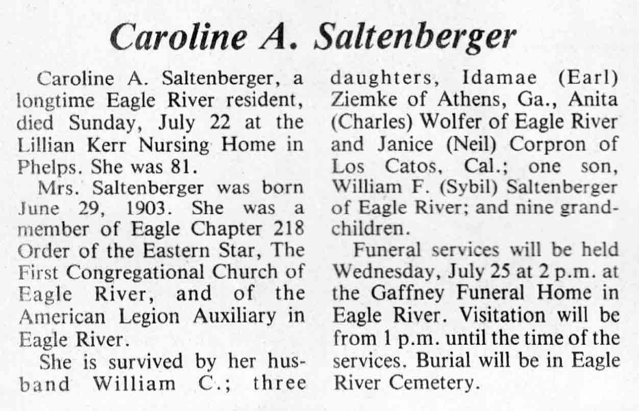 | Saltenberger | Caroline A | 29 Jun 1903 | 22 Jul 1984 | TLN | 25 Jul 1984 | 4 |