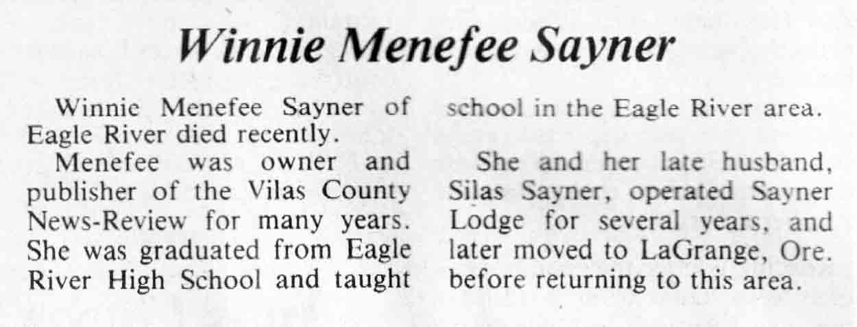 | Sayner | Winnie Menefee | c 1984 | TLN | 14 Nov 1984 | 4 | |
