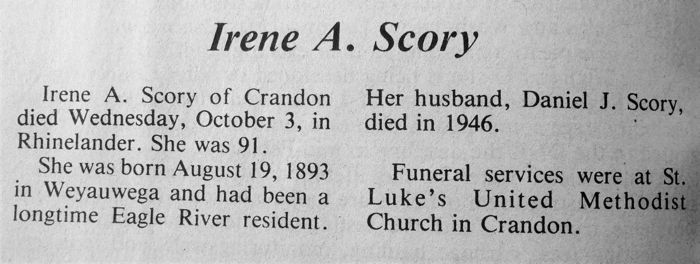| Scory | Irene A | 19 Aug 1893 | 03 Oct 1984 | TLN | 10 Oct 1984 | 4 |