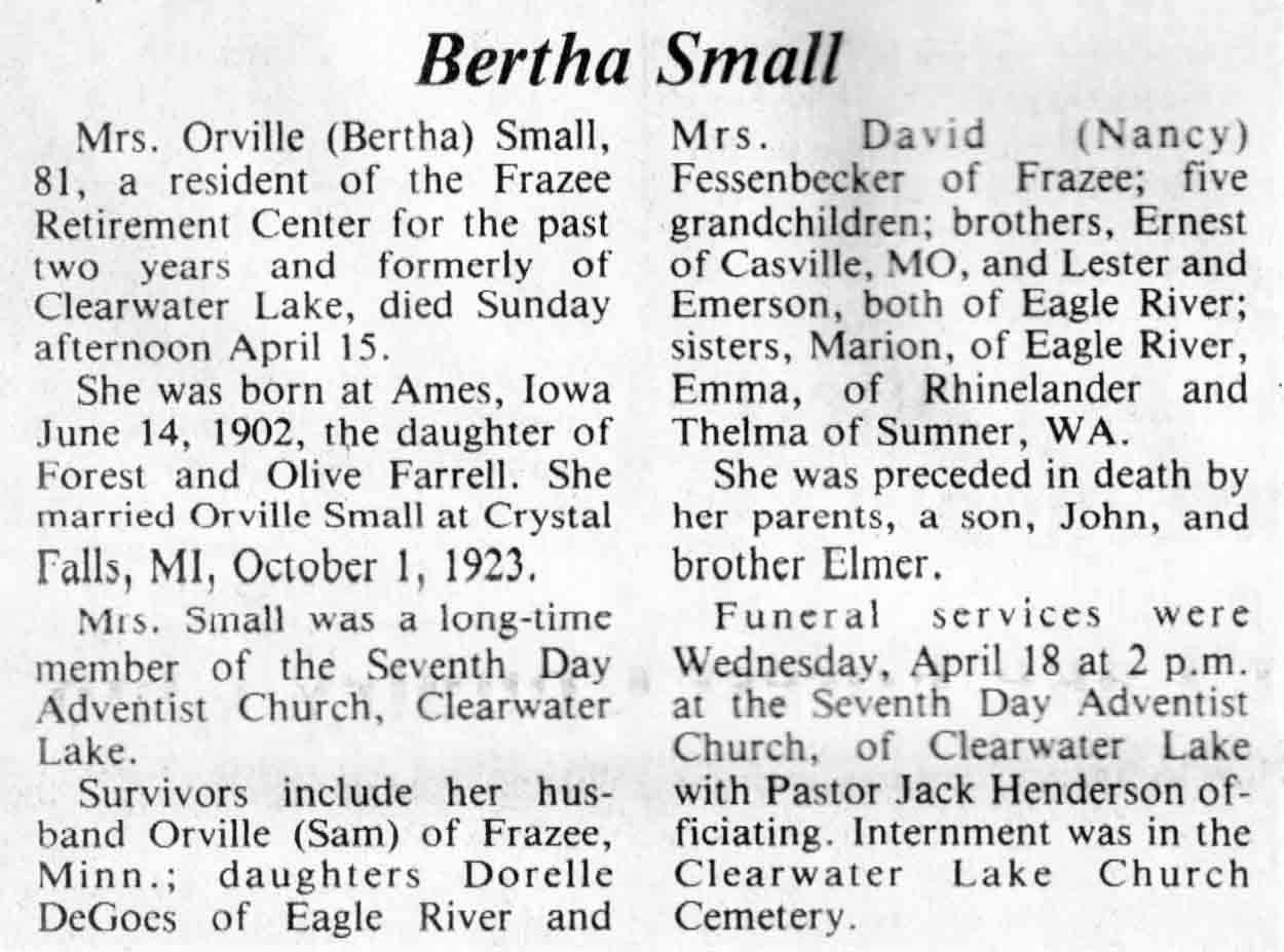 | Small | Bertha (Farrell) #2 | 14 Jun 1902 | 15 Apr 1984 | TLN | 25 Apr 1984 | 4 |