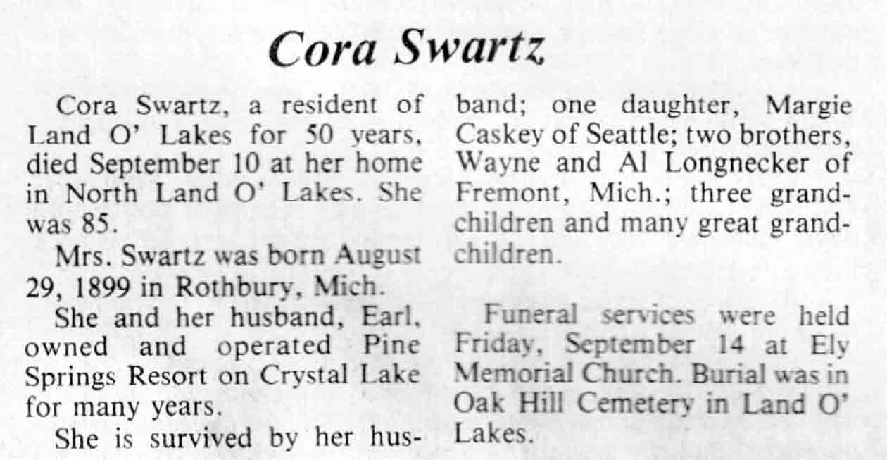 | Swartz | Cora (Longnecker) | 29 Aug 1899 | 10 Sep 1984 | TLN | 12 Sep 1984 | 4 |
