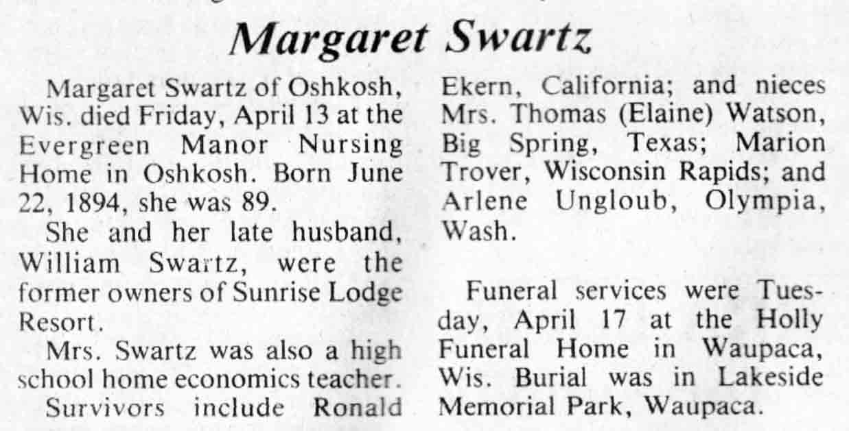 | Swartz | Margaret | 22 Jun 1894 | 13 Apr 1984 | TLN | 25 Apr 1984 | 4 |