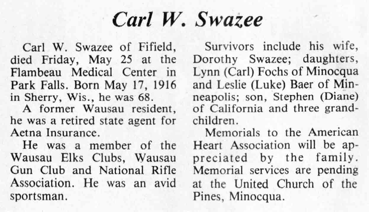 | Schwalbach | James A | c 1913 | 06 May 1984 | TLN | 09 May 1984 | 4 |