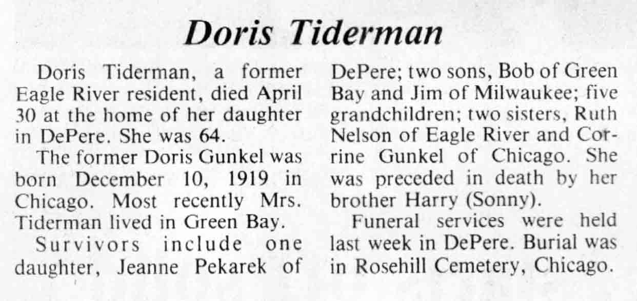 | Tiderman | Doris | 10 Dec 1919 | 30 Apr 1984 | TLN | 09 May 1984 | 4 |