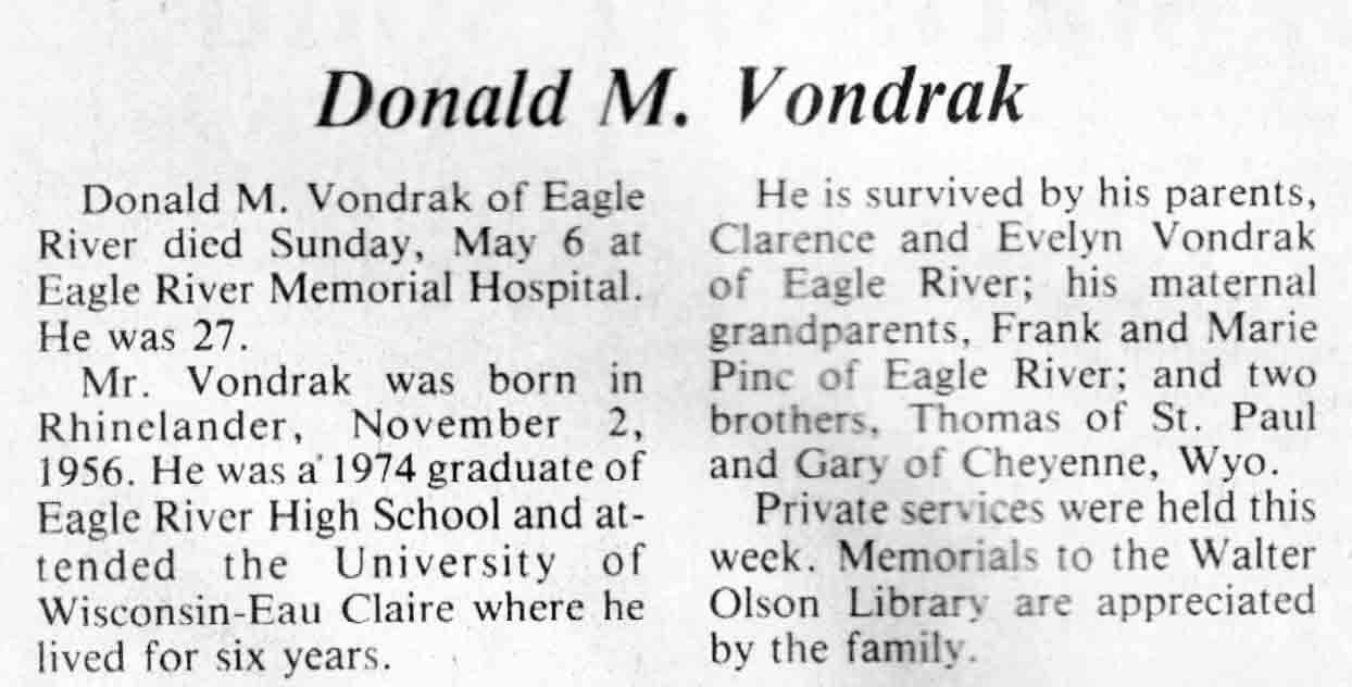 | Vondrak | Donald M | 02 Nov 1956 | 06 May 1984 | TLN | 09 May 1984 | 4 |