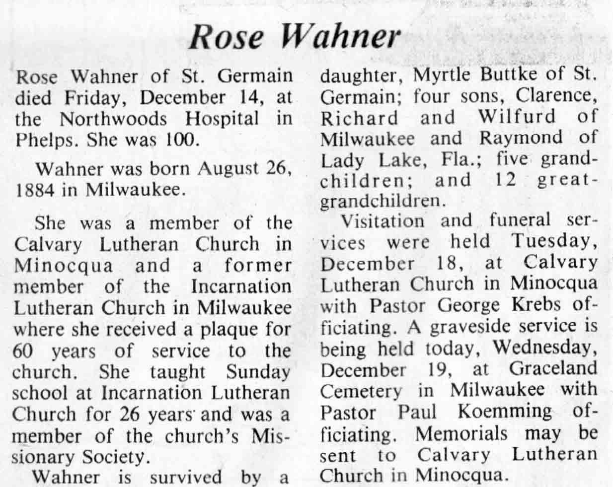 | Wahner | Rose | 26 Aug 1884 | 14 Dec 1984 | TLN | 19 Dec 1984 | 4 |