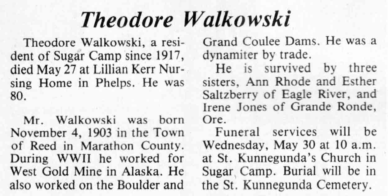 | Walkowski | Theodore | 04 Nov 1903 | 27 May 1984 | TLN | 30 May 1984 | 4 |