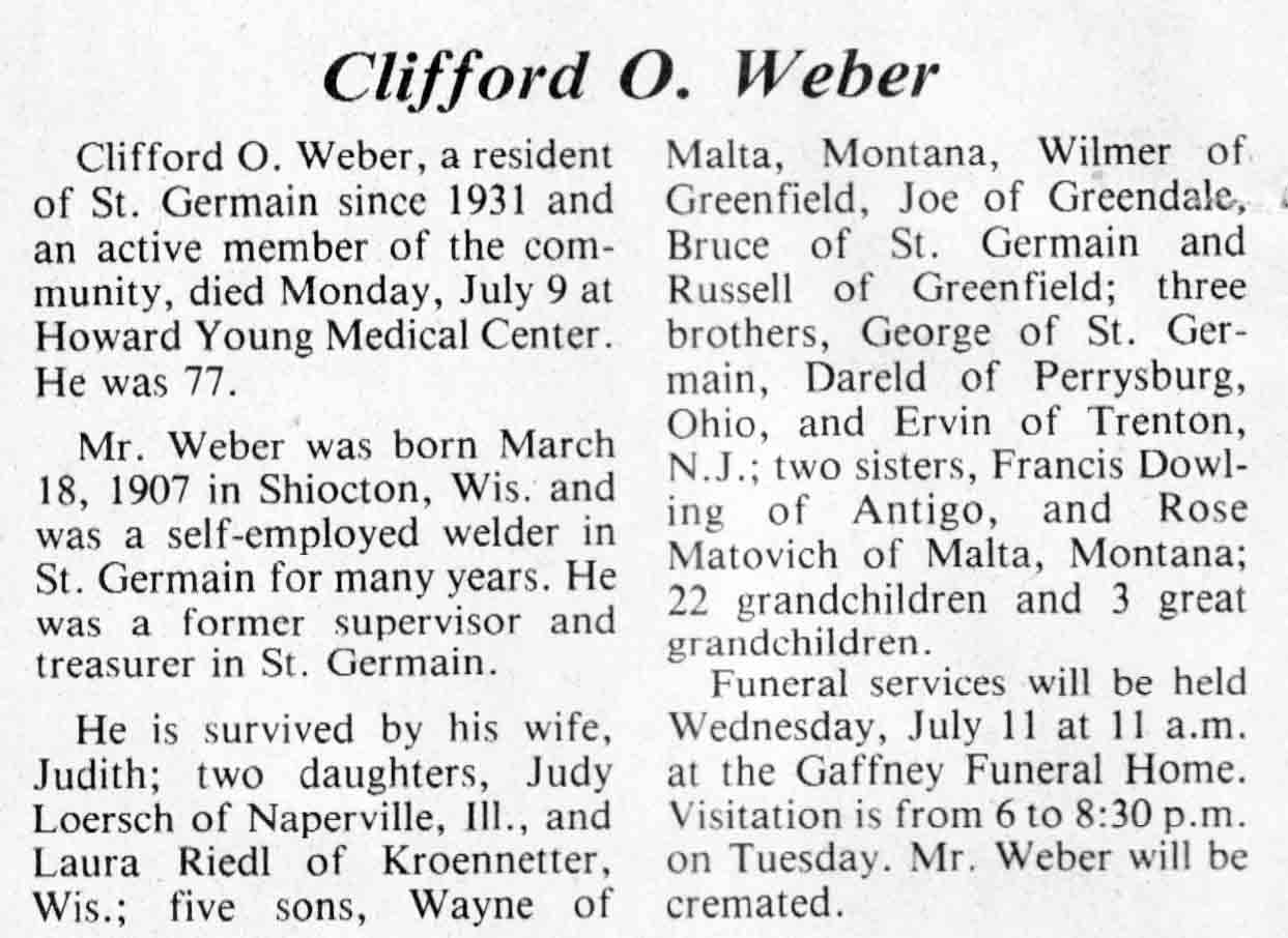 | Weber | Clifford O | 18 Mar 1907 | 09 Jul 1984 | TLN | 11 Jul 1984 | 4 |