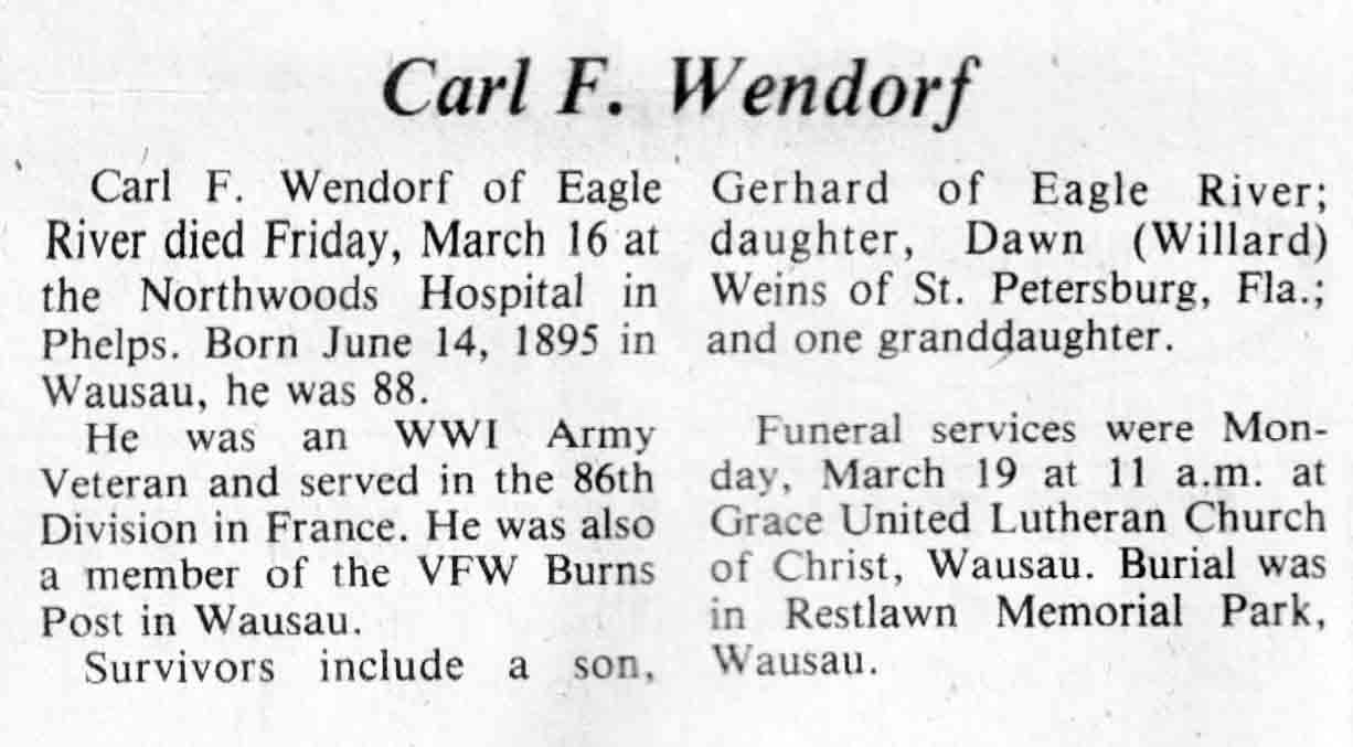 | Wendorf | Carl F | 14 Jun 1895 | 16 Mar 1984 | TLN | 21 Mar 1984 | 22 |