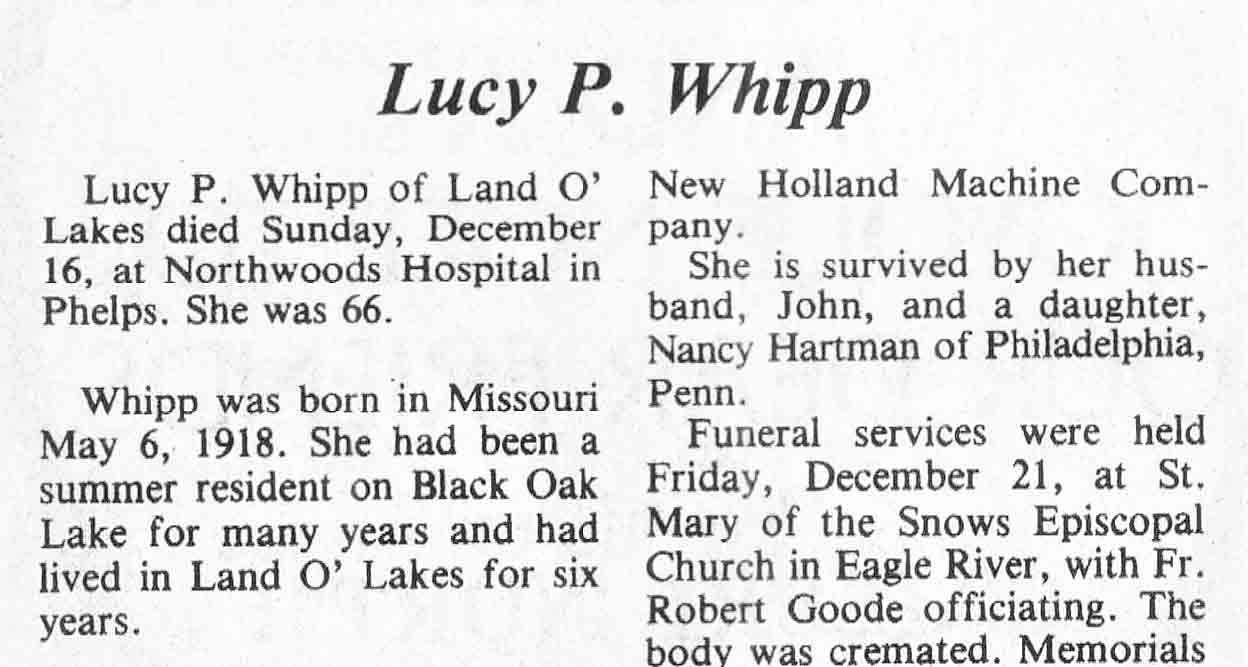 | Whipp | Lucy P | 06 May 1918 | 16 Dec 1984 | TLN | 26 Dec 1984 | 4 |