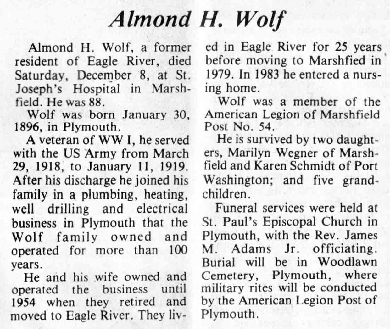 | Wolf | Almond H | 30 Jan 1896 | 08 Dec 1984 | TLN | 26 Dec 1984 | 4 |