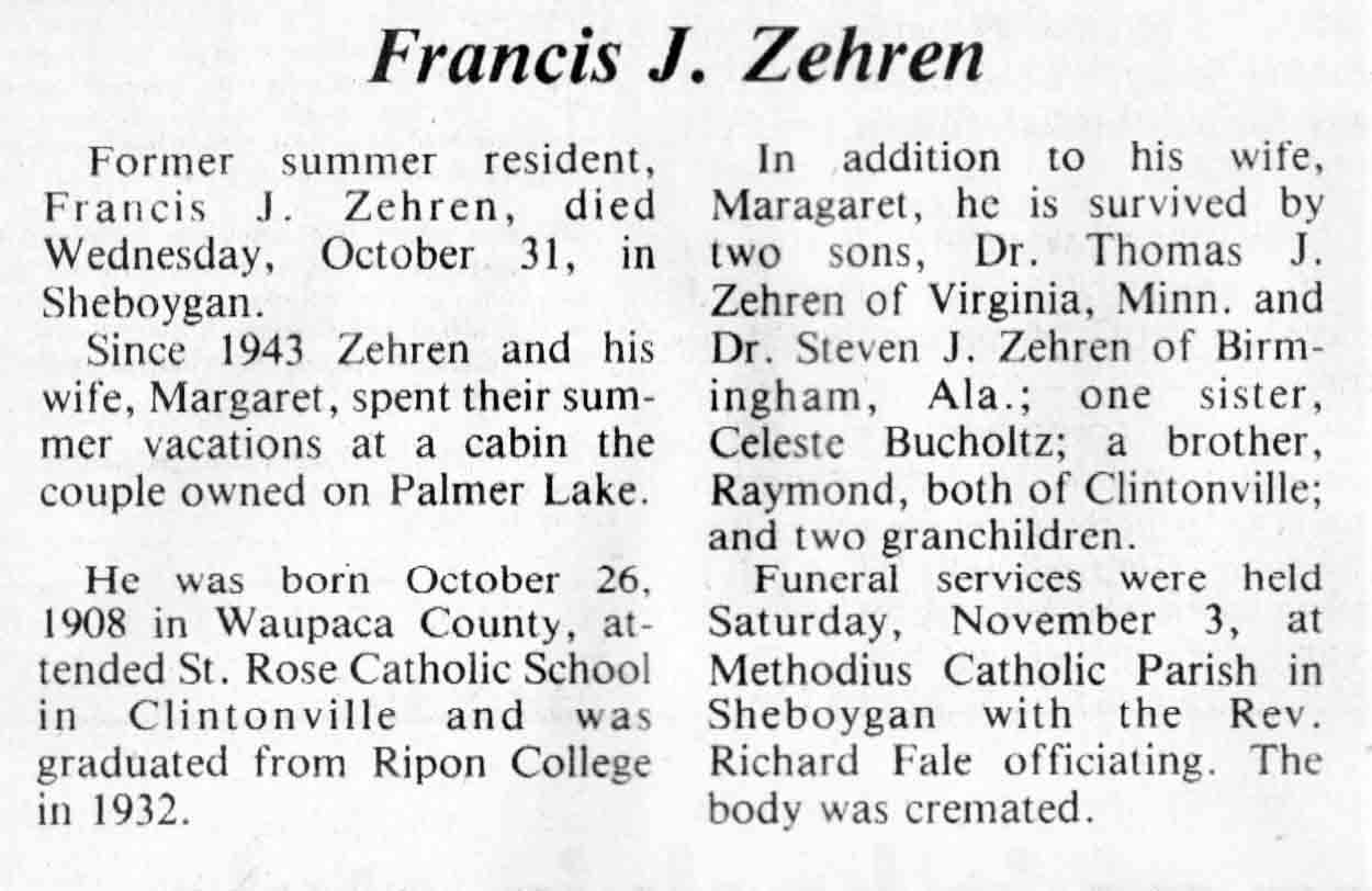 | Zehren | Francis J | 26 Oct 1908 | 31 Oct 1984 | TLN | 14 Nov 1984 | 4 |