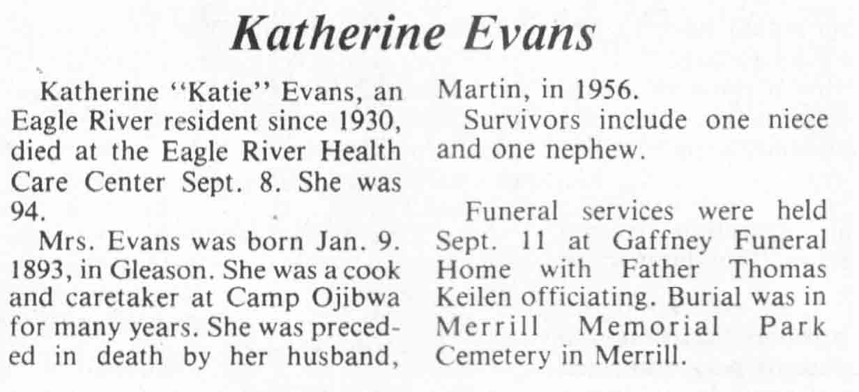 | Evans | Katherine 'Kate' | 9 Jan 1893 | 08 Sep 1987 | V N-R | 16 Sep 1987 | 4 |