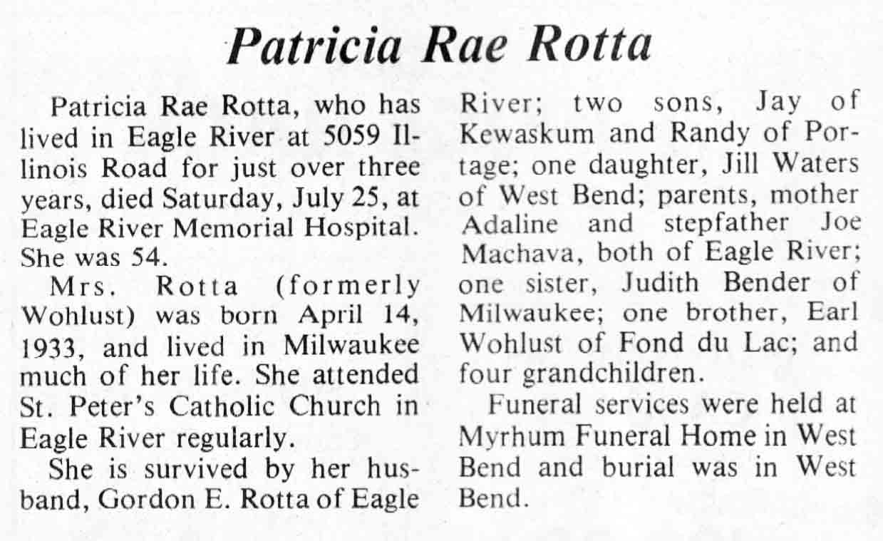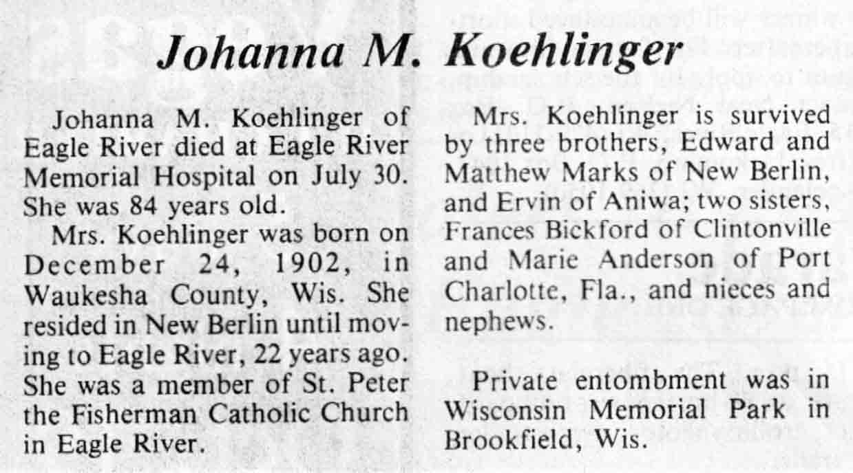 | Filtz | Julia B (Bogusiewicz) | 22 May 1918 | 06 Oct 1987 | V N-R | 14 Oct 1987 | 4 |