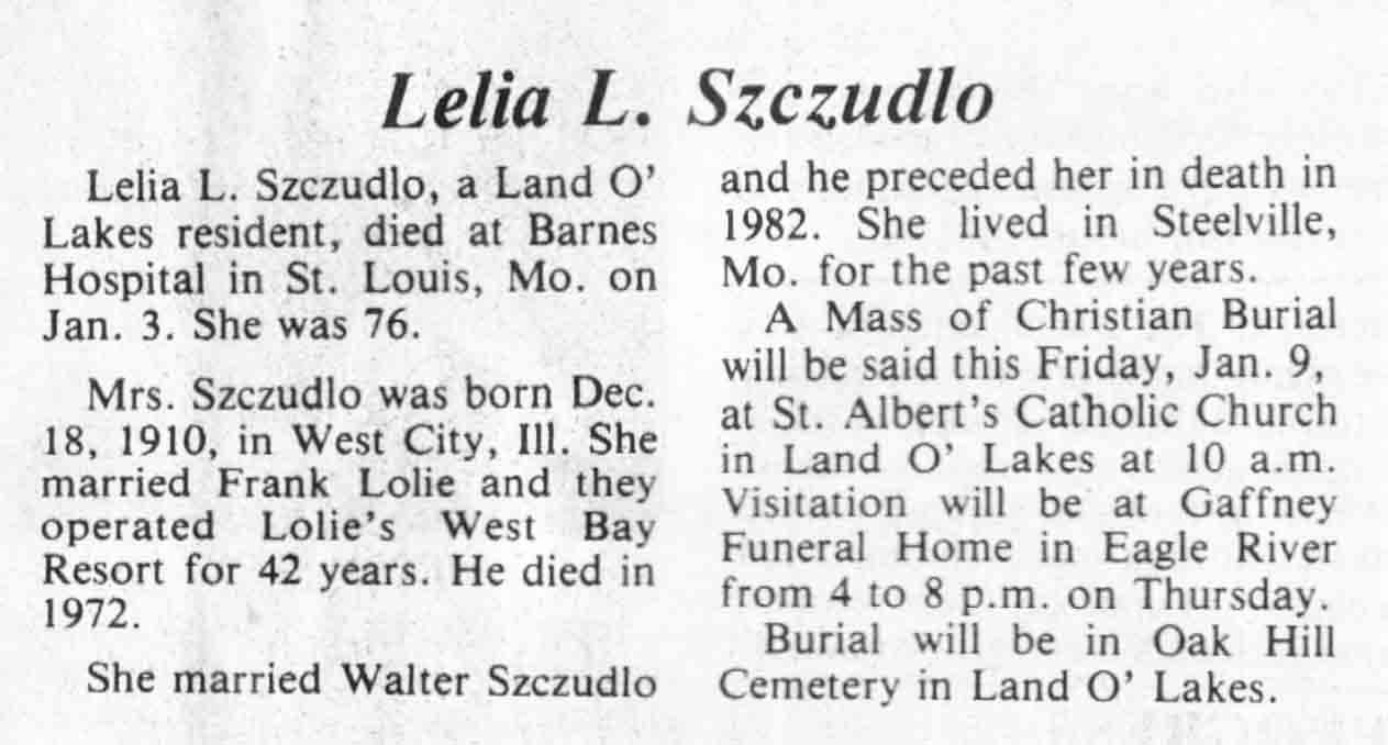 | Szczudlo | Lelia L | 18 Dec 1910 | 03 Jan 1987 | V N-R | 07 Jan 1987 | 4 |
