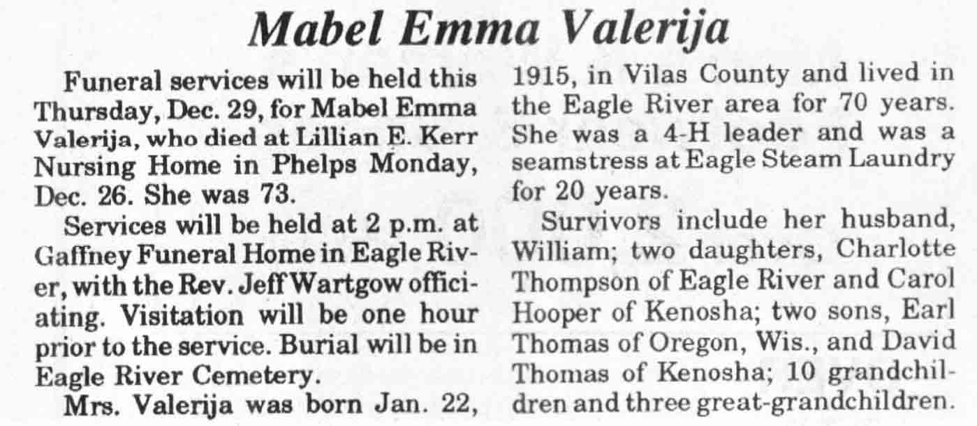 | Valerija | Mabel Emma | 22 Jan 1915 | 26 Dec 1987 | V N-R | 28 Dec 1988 | 4 |