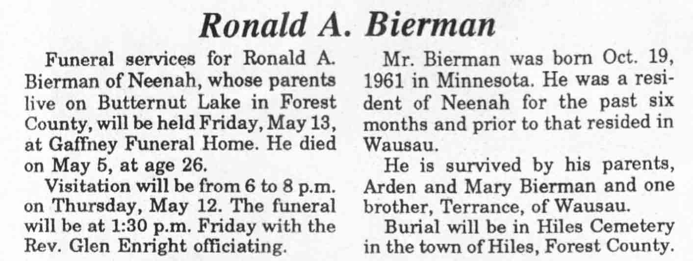 | Bierman | Ronald A | 19 Oct 1961 | 05 May 1988 | V N-R | 11 May 1988 | 4 |