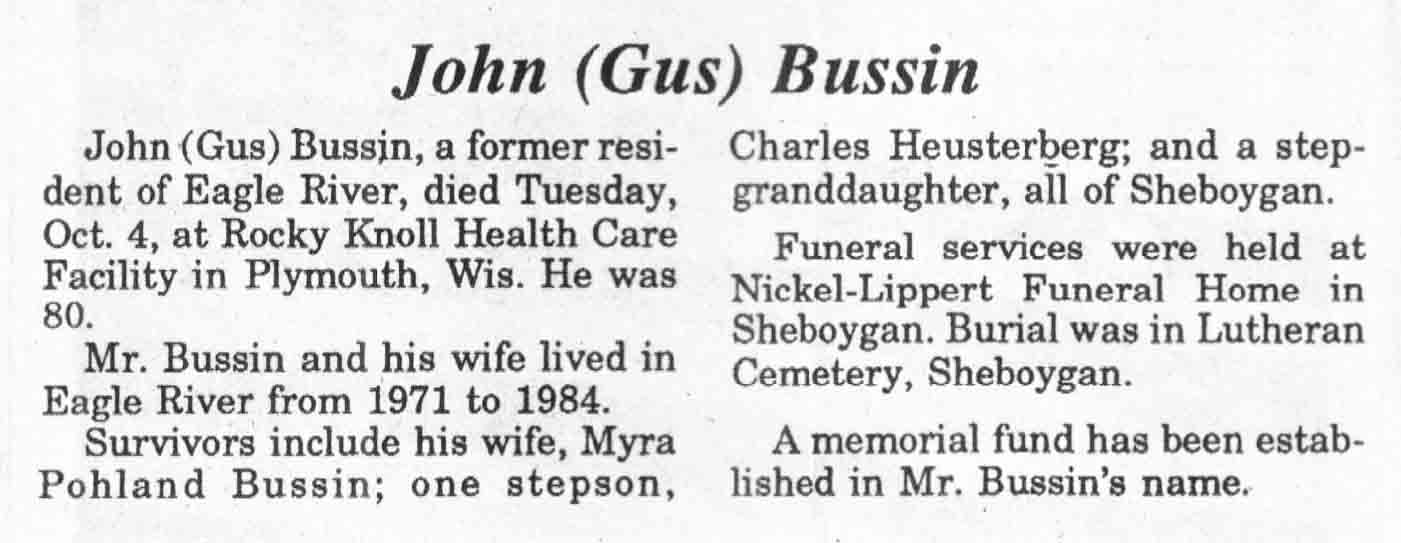 | Bussin | John 'Gus' | c 1908 | 04 Oct 1988 | V N-R | 12 Oct 1988 | 4 |