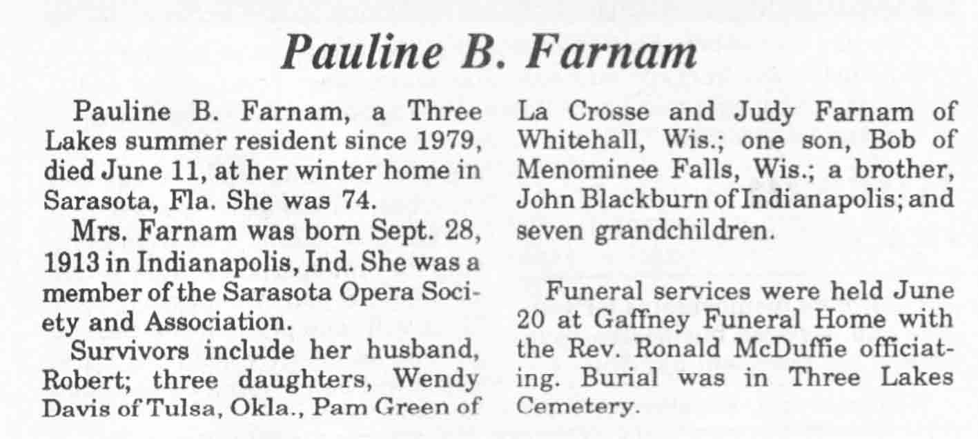 | Farnam | Pauline #1 | 11 Jun 1988 | V N-R | 15 Jun 1988 | 4 | |