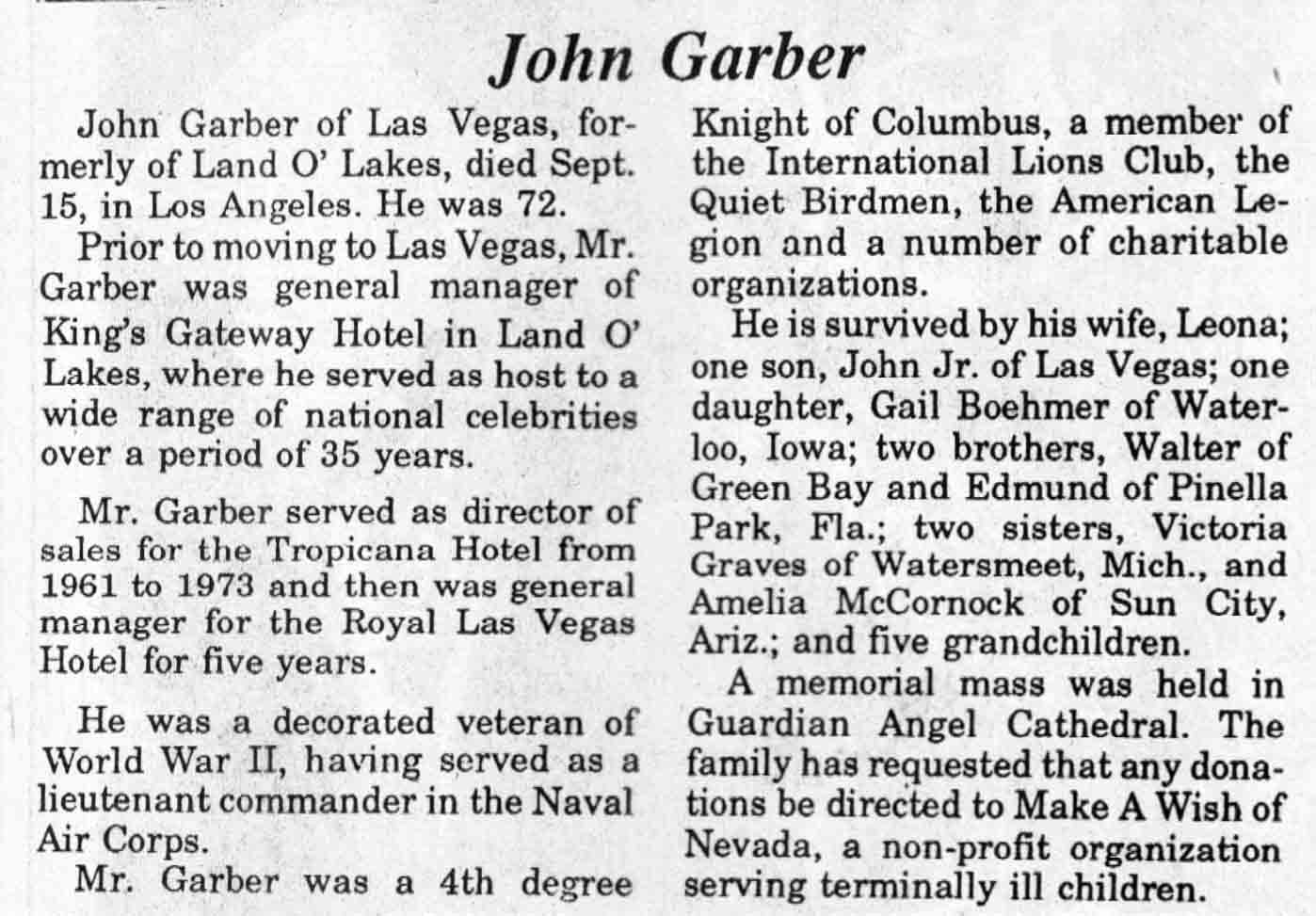 | Garber | John | c 1916 | 15 Sep 1988 | V N-R | 05 Oct 1988 | 4 |