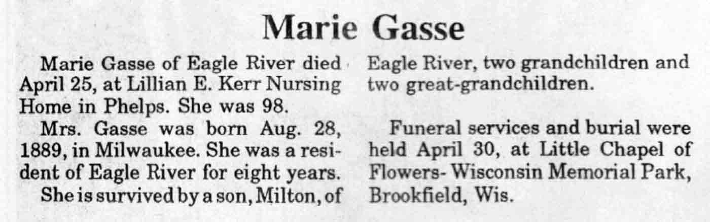 | Gasse | Marie | 28 Aug 1889 | 25 Apr 1988 | V N-R | 04 May 1988 | 4 |