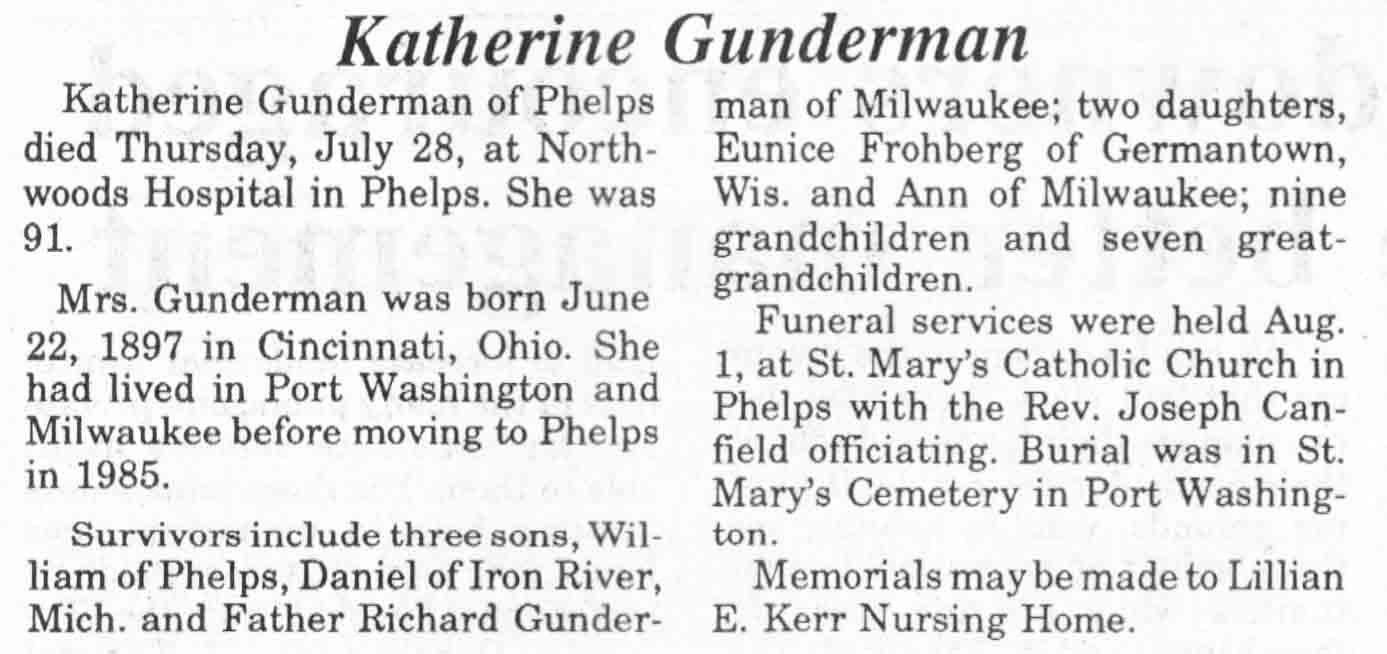 | Gunderman | Katherine | 22 Jun 1897 | 28 Jul 1988 | V N-R | 03 Aug 1988 | 4 |