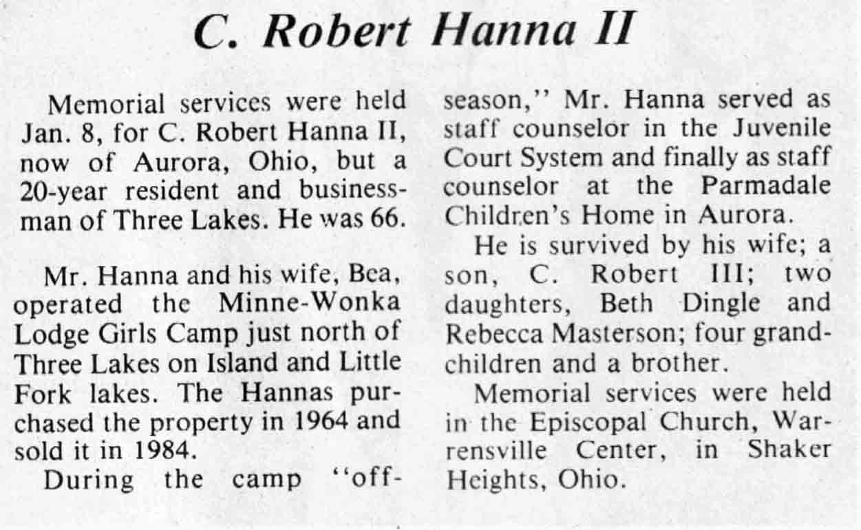 | Hanna | C Robert, II | c 1922 | c 1988 | V N-R | 10 Feb 1988 | 4 |