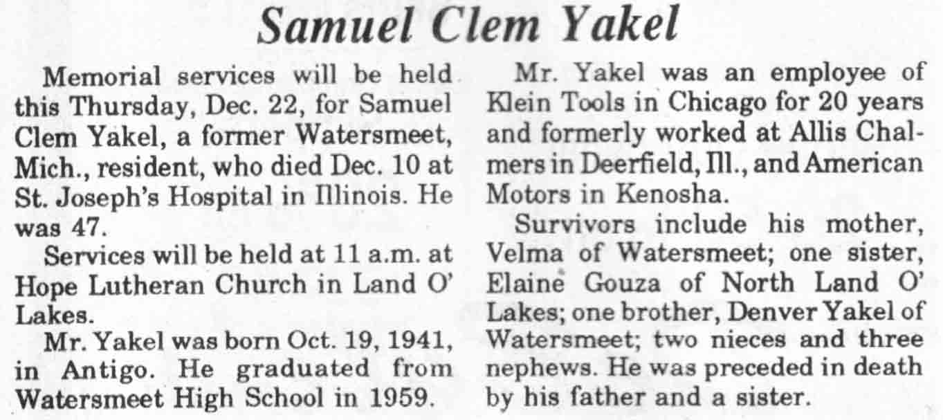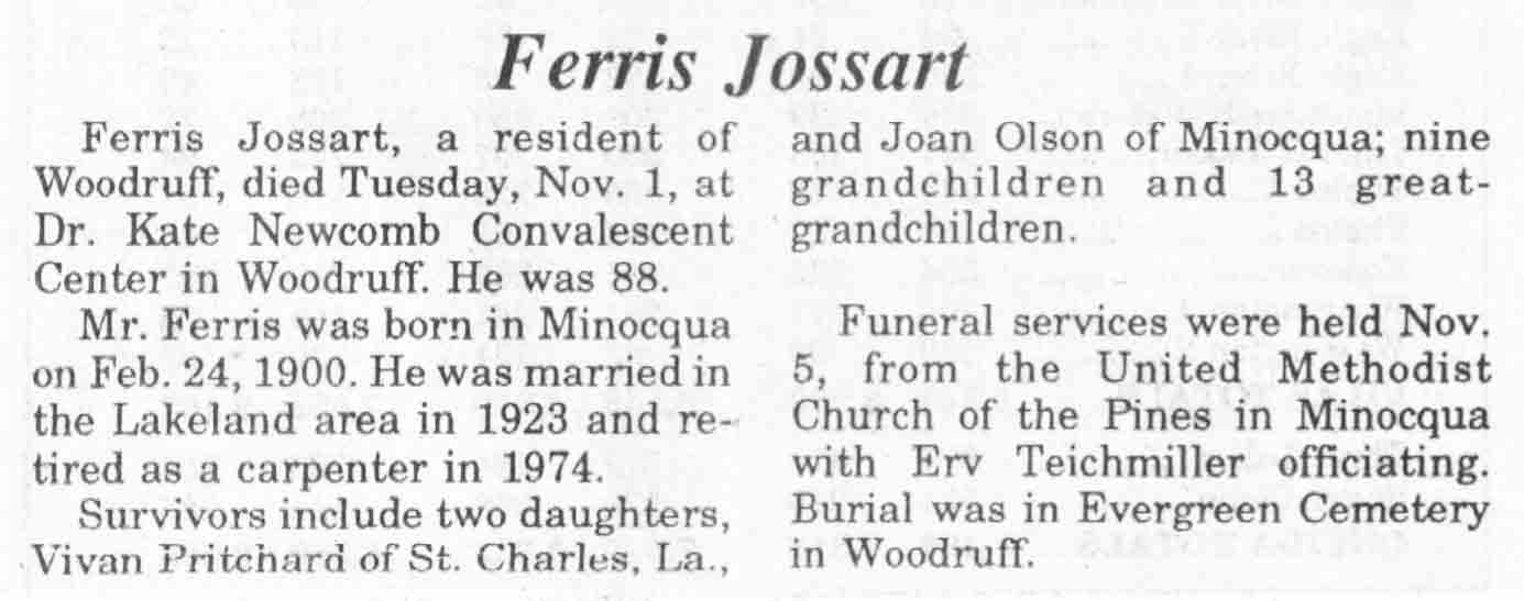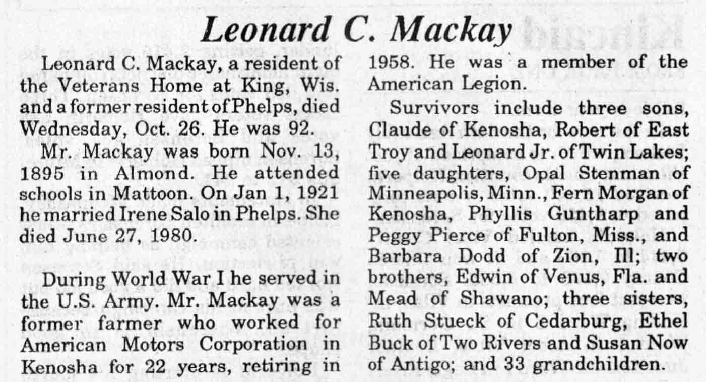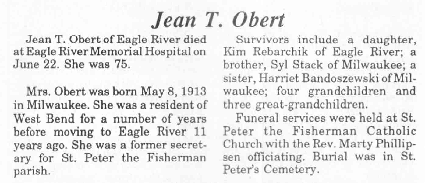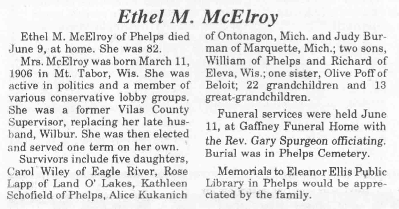 | Wyman | Rose E (Welch) | c 1898 | 06 Jul 1988 | V N-R | 20 Jul 1988 | 4 |