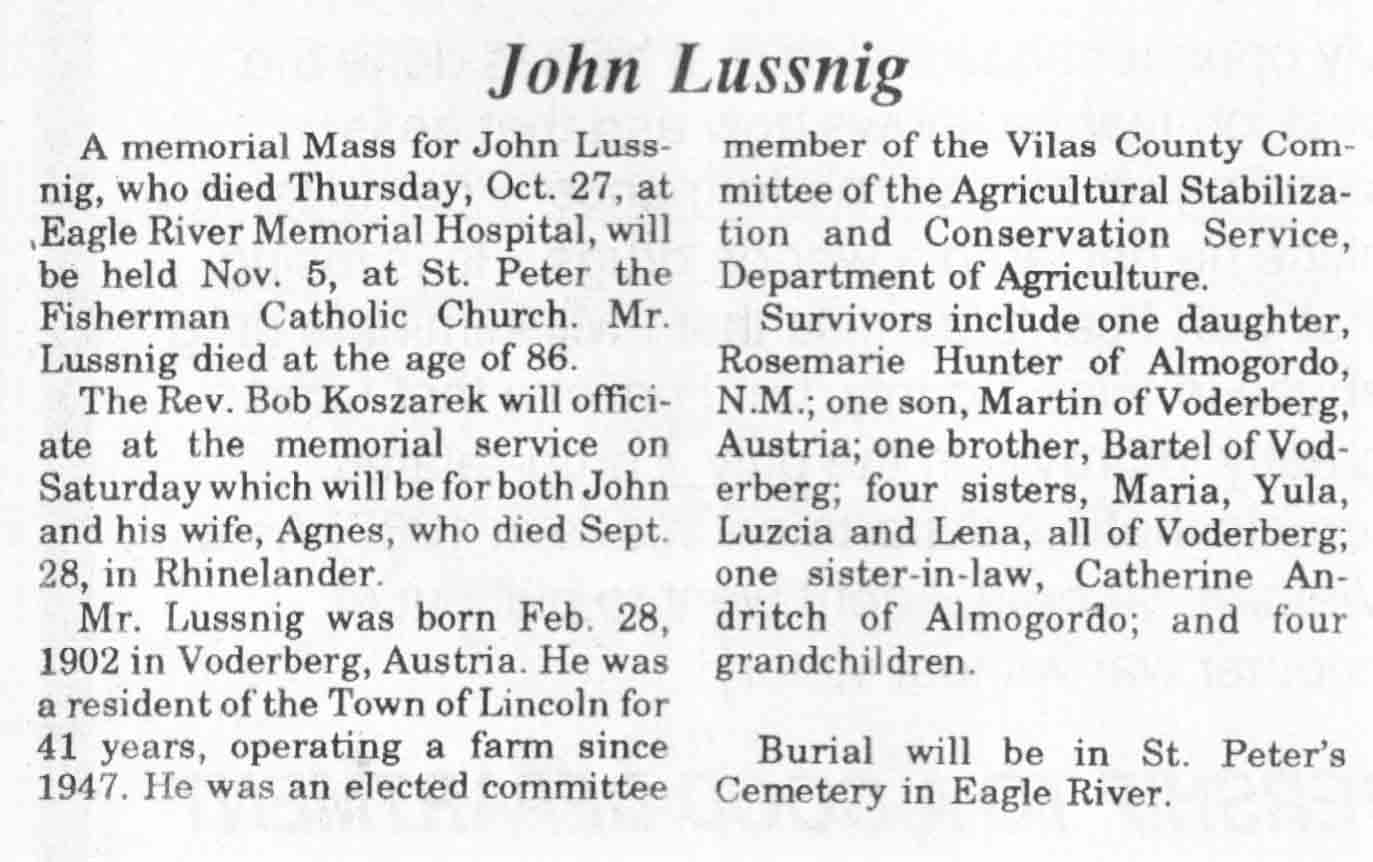 | Wanek | Harold J | 30 Jun 1919 | 17 Feb 1988 | V N-R | 24 Feb 1988 | 4 |