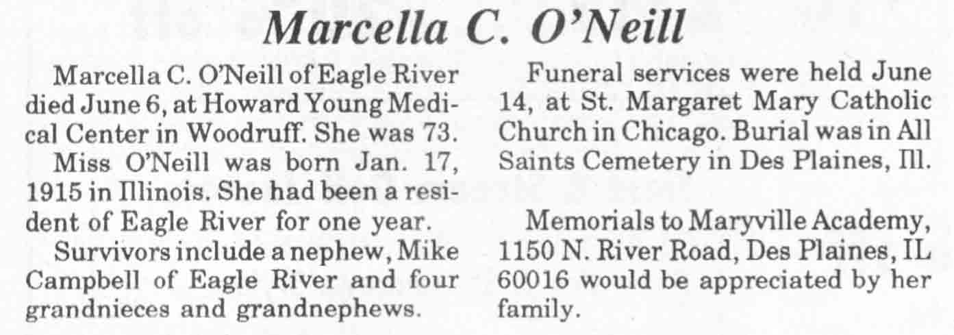 | O'Neill | Marcella C | 17 Jan 1915 | 06 Jun 1988 | V N-R | 15 Jun 1988 | 4 |