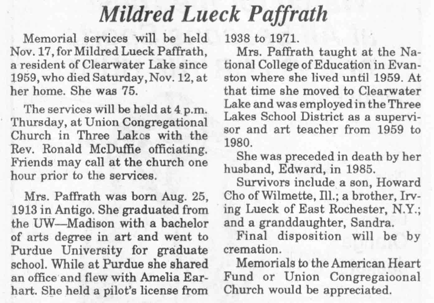 | Paffrath | Mildred (Lueck) | 25 Aug 1913 | 12 Nov 1988 | V N-R | 16 Nov 1988 | 4 |