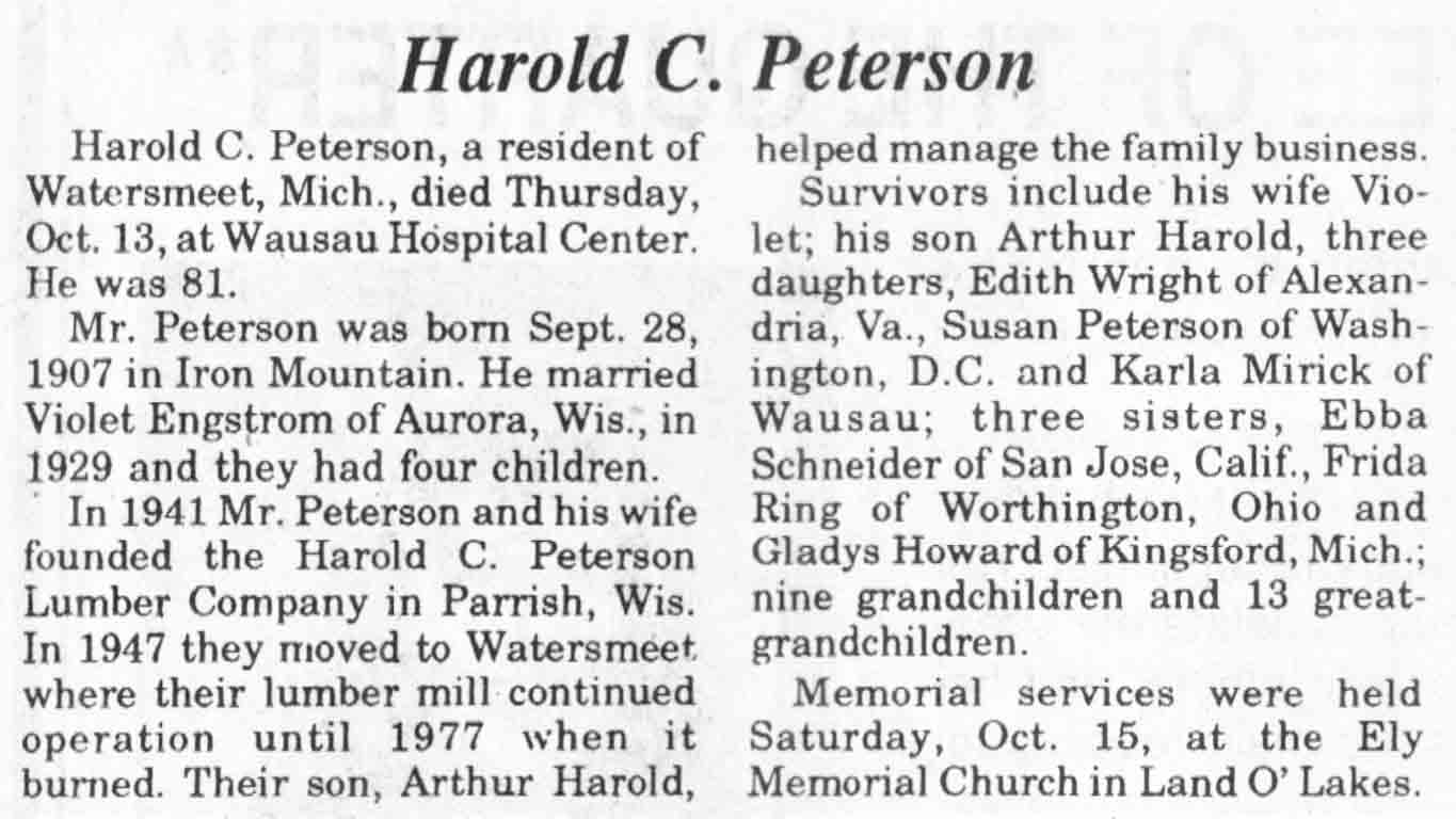 | Peterson | Harold C | 28 Sep 1907 | 13 Oct 1988 | V N-R | 19 Oct 1988 | 4 |