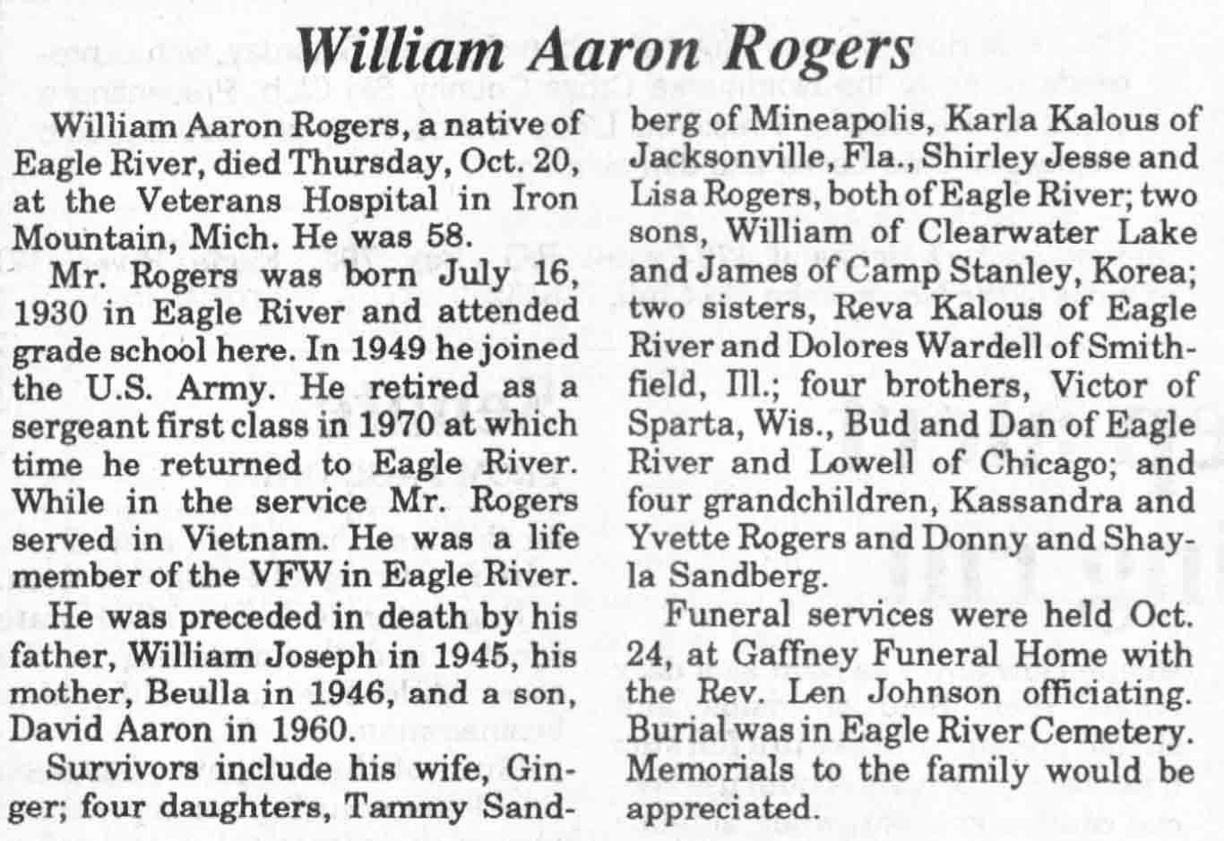 | Rogers | William Aaron | 16 Jul 1930 | 20 Oct 1988 | V N-R | 26 Oct 1988 | 4 |